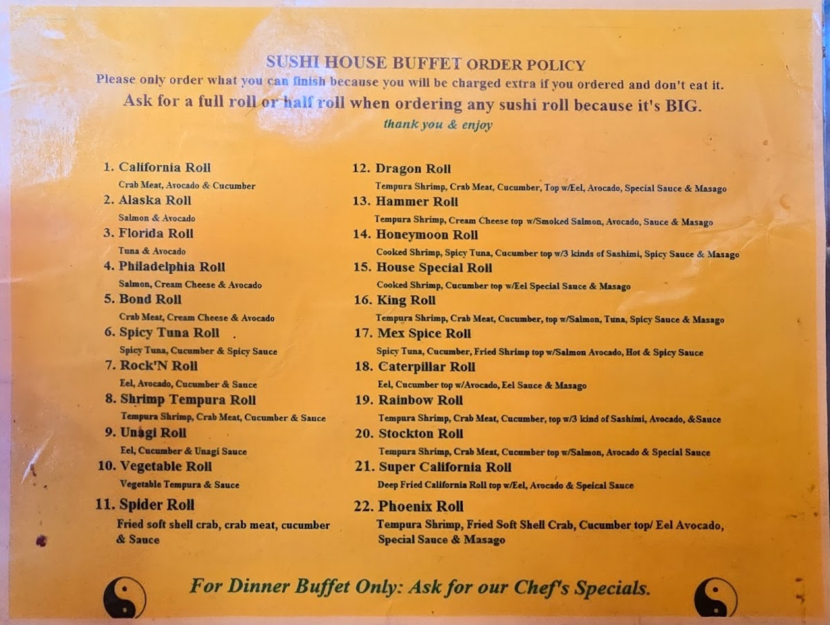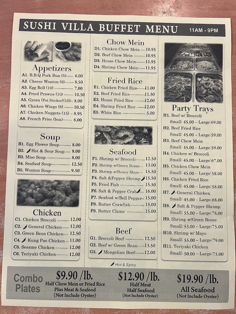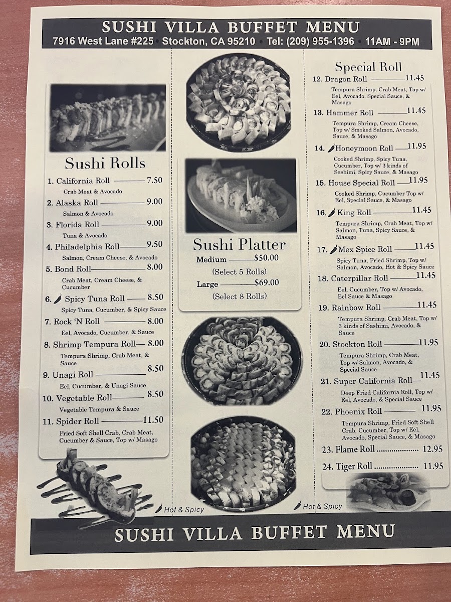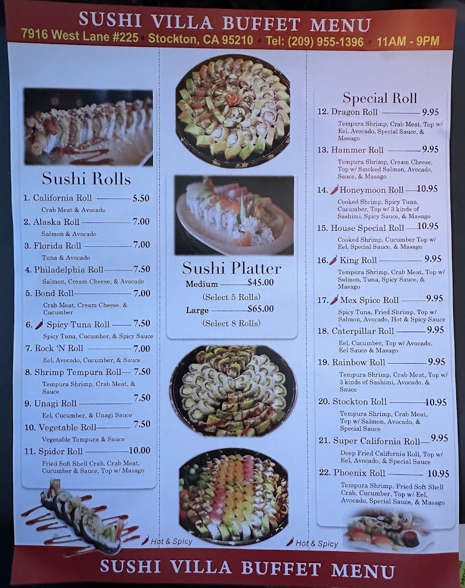 Welcome to Sushi Villa Buffet Chinese & Japanese Grill, where a delightful fusion of Chinese and Japanese cuisine awaits. Nestled in Stockton, CA, this buffet promises a culinary journey through vibrant flavors and fresh ingredients. The menu features crowd-pleasers such as the General Chicken and Kung Pao Chicken, both delivering a satisfying kick for spice lovers. For sushi enthusiasts, the rotating sushi bar offers an engaging visual feast and the opportunity to enjoy expertly crafted rolls crafted on-demand.